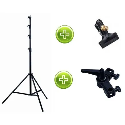 ;The Falcons Eyes Light Stand for Background Boards is suitable for background boards with a minimum height of 120 cm and a maximum height of 260 cm. The clamp at the top of the tripod holds the background board in place. If you already have a light stand, you can choose to purchase the Falcon Eyes Background Board Light Stand Mount available in the optional accessories tab below.