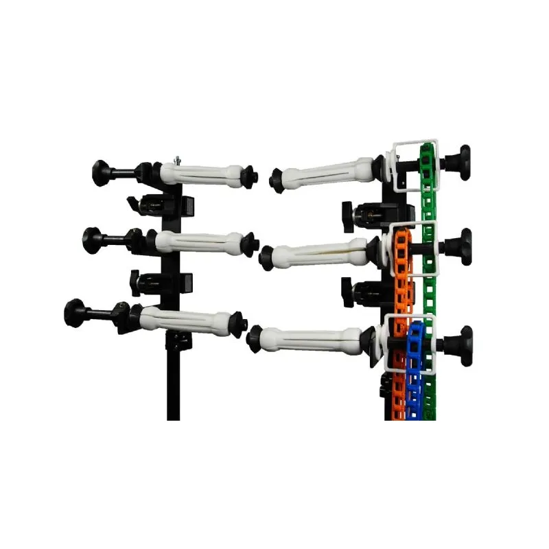 The Linkstar Background Support ES-3 is a universal hanging system used to hang up to 3 backgrounds. The system can easily be fixed to the wall or ceiling. Further, through the use of 4 x SA-PC (which can be found in the ‘optional accessories’ tab below), the ES-3 can be mounted to a light stand. Two roll holders are supplied. On the roll holder without chain you will find a rotary knob that allows you to adjust how light or heavy the paper rolls off. The last picture shows the dial.