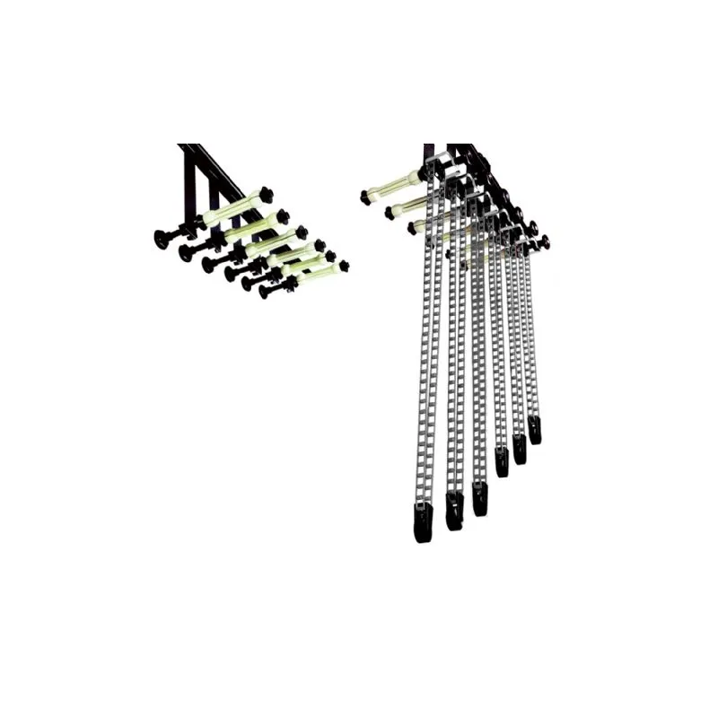 2 x wall-/ceiling brackets; 12 x holders; 6 x chain; 6 x chain guides; 6 x counterweight; 4 x mounting bolts