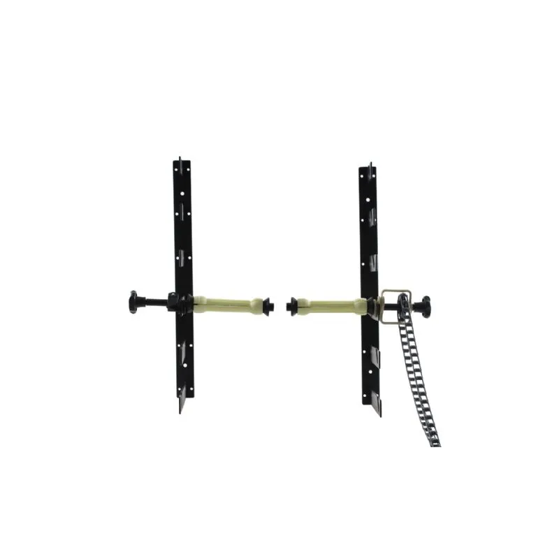 The StudioKing MBG-2006 Background Support is a universal hanging system used to hang up to six backgrounds. The system can easily be fixed to the wall or ceiling. The holder is easiy attachable to a wall or ceiling. Once placed on the holder, the background roll can be secured by fastening the holder causing the clamps to expand and in turn, ensuring the background roll is secured. The supplied guides ensure the chains stay in place while the chains allow the user the easily roll the background paper up and down.