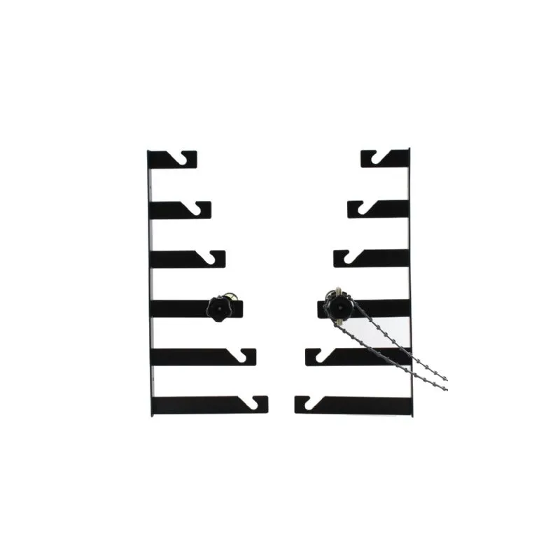 2 x wall-/ceiling brackets; 12 x holders; 6 x chain (Black); 6 x chain guides; 6 x counterweight; 4 x mounting bolts