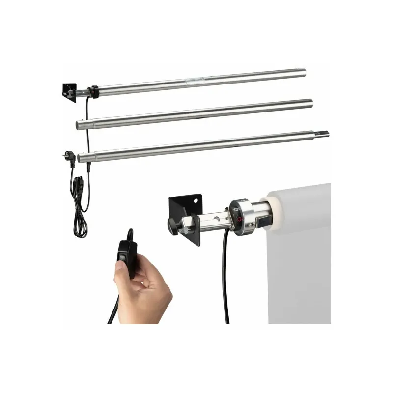 The BRESSER MR-300 electric background system was developed to optimize available space in your studio. The background mount is designed for 1 background roll and comes with a remote control .