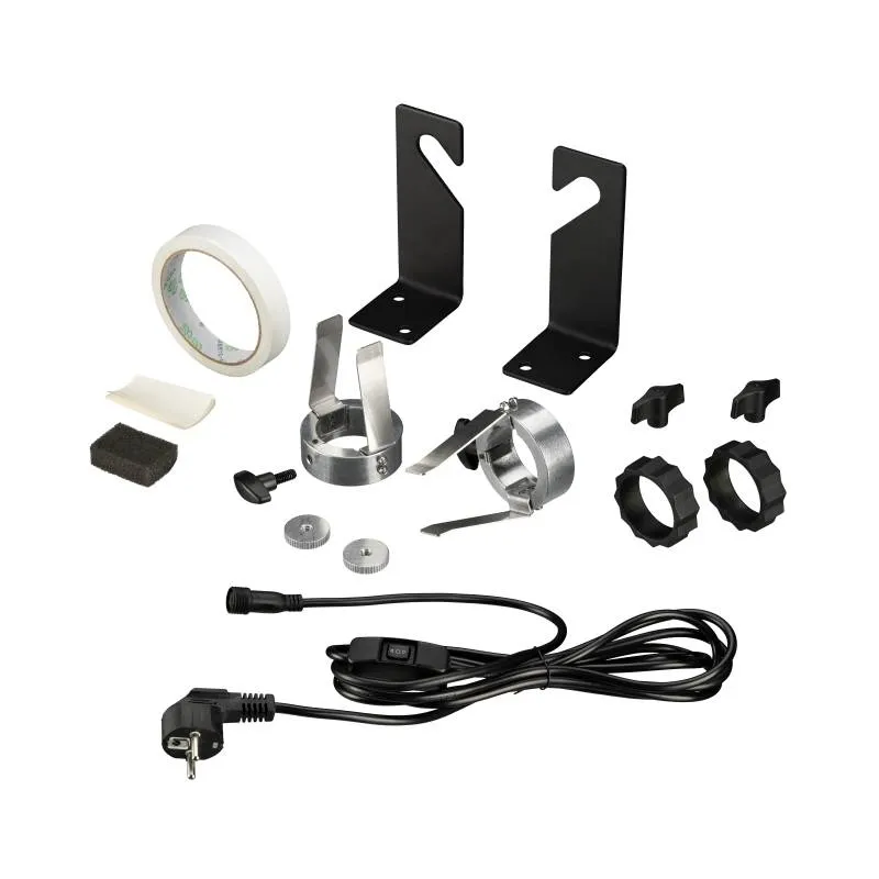The set also comes with wall mounts , which can be used to mount the system on a studio wall or ceiling. It is also possible to use the system on stable lamp stands. We recommend the following lamp stands (available separately):