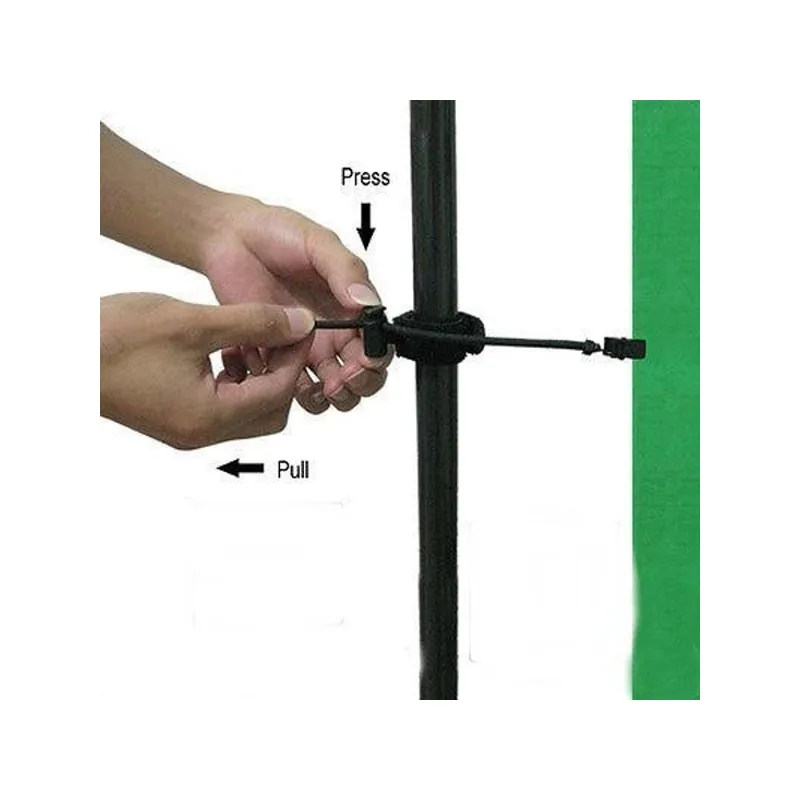 This set of 10 BRESSER BR-65 tighteners for cloth backgrounds attaches to background systems via a hook and loop fastener. A small clip is attached to the cloth background , which can then be tightened with the elastic band. The tighteners ensure that your background is kept tight and crease-free .
