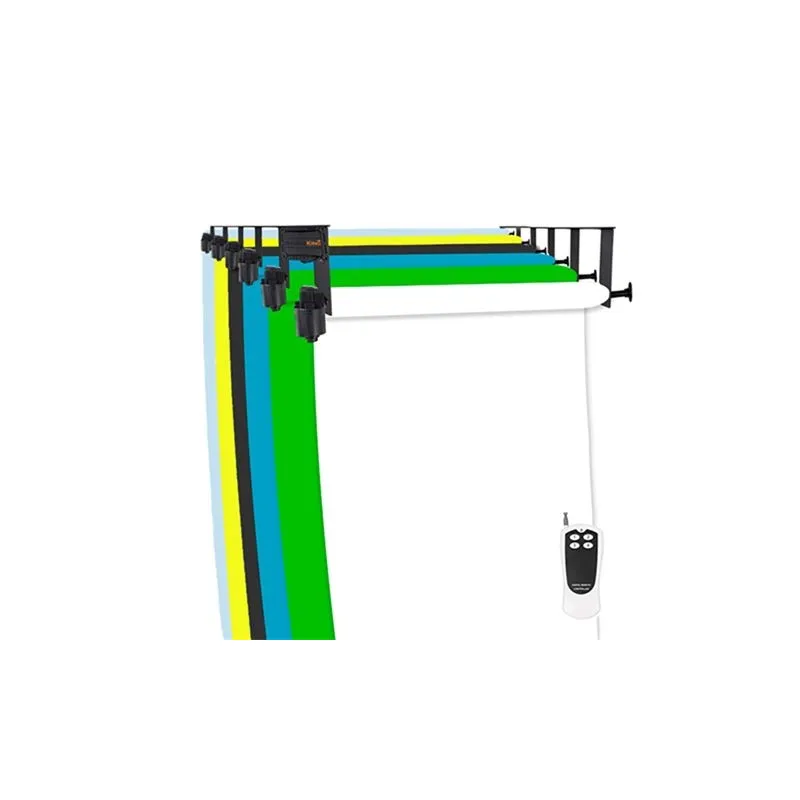 Roll up and down your background rolls with 1 push of a button. The B-6WE is an electric system from StudioKing and can carry up to 6 rolls. With this system you easily choose which color you want to use as background. You determine the width of the background system yourself, based on your paper roll. This background system works with paper rolls of 1.35 and 2.18 width. With the supplied remote control you can roll the rolls up or down.