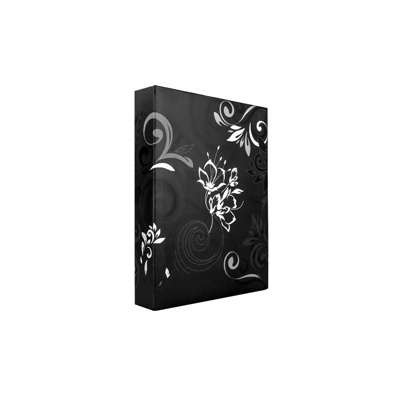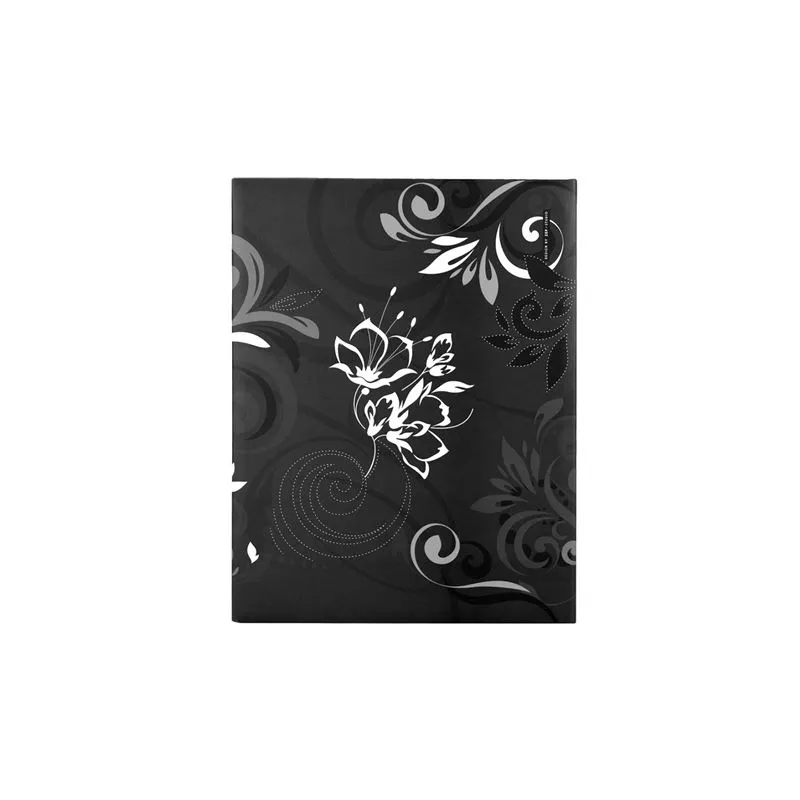 The Zep Slip-In Album EB46100B Umbria Black for 100 Photos 10x15 cm by Zep Italia is an empty photo album in which you can store all your photos in one place. This album has slightly sticky sheets in which you can insert 100 photos of 10x15 cm. The dimensions of the cover are 13x16.5 cm. The EB46100B is characterised by its black paper cover with grey and white floral prints.