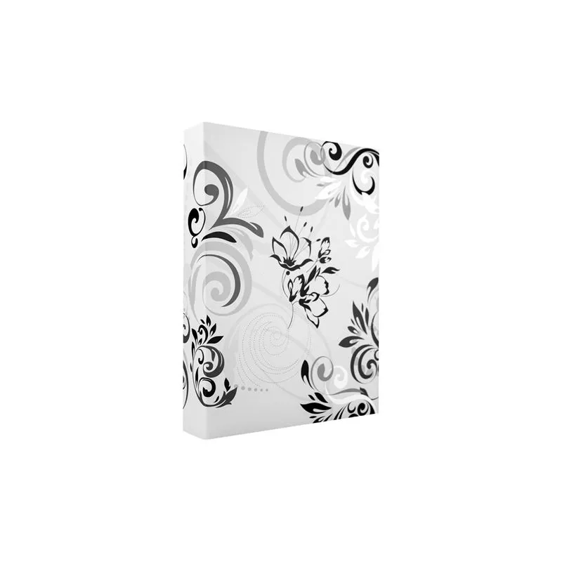 The Zep Slip-In Album EB46100W Umbria White for 100 Photos 10x15 cm by Zep Italia is an empty photo album in which you can store all your photos in one place. This album has slightly sticky sheets in which you can insert 100 photos of 10x15 cm. The dimensions of the cover are 13x16.5 cm. The EB46100W stands out by its white paper cover with grey and black floral prints.