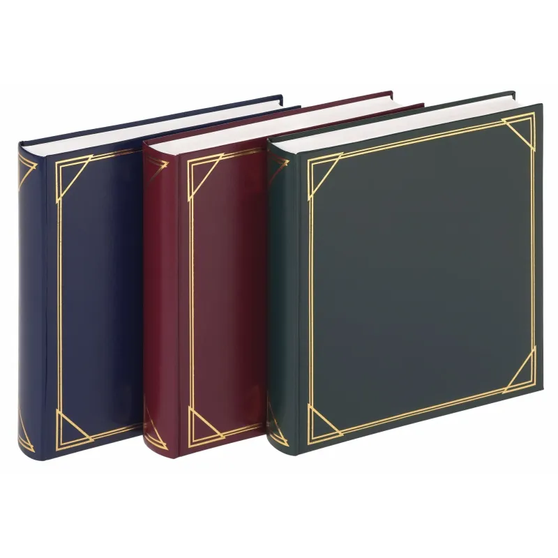 Bookbound album with artificial leather cover & gold embossment. Size 30x30 cm with 100 white pages with white glassine covers.
