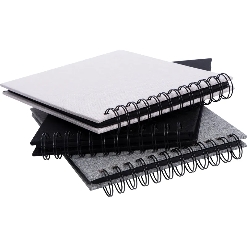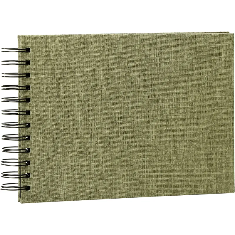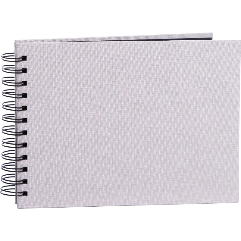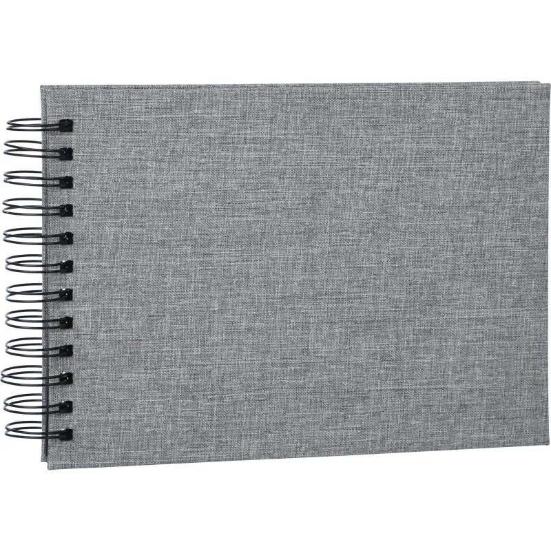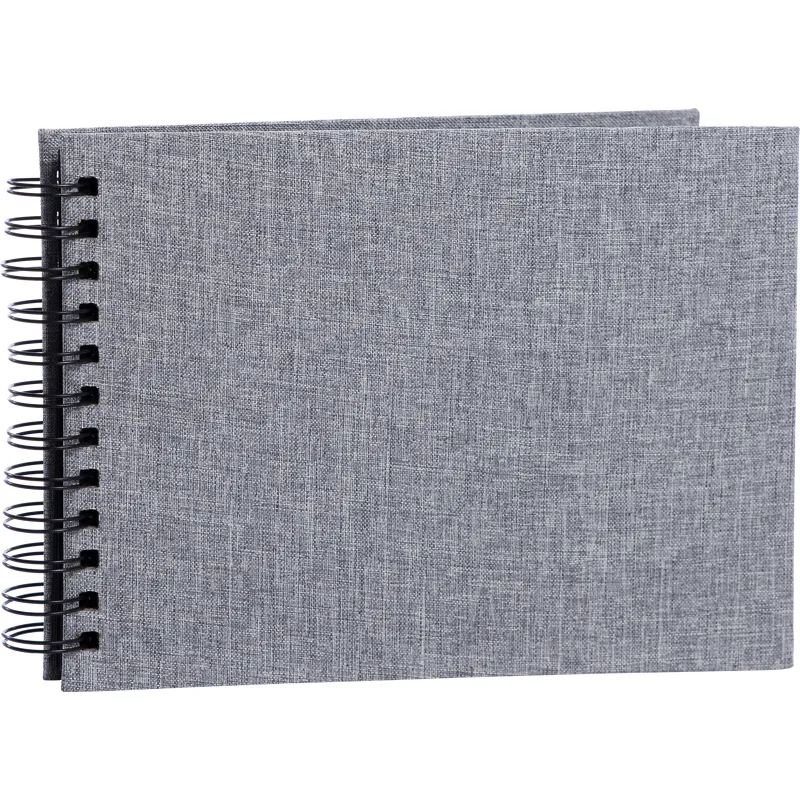 This spiral photo album combines modern design with classic presentation, featuring a sturdy textile cover with a canvas look and bold black spiral binding. It lays flat for easy viewing and creative arrangement.