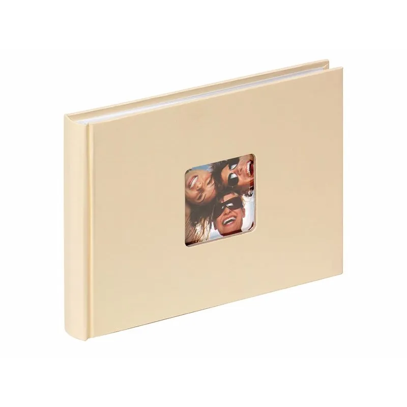Bookbound photoalbum in sixe 22x16 cm with a die-cut on the front cover.