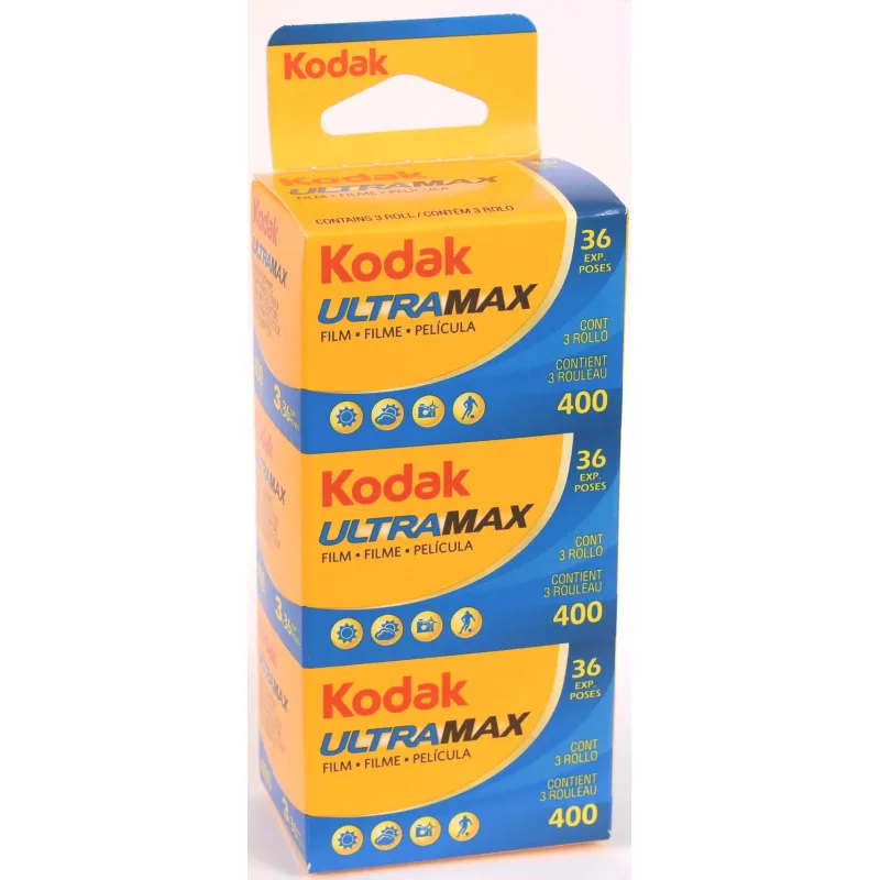 Colorful negative film 35 mm roll ISO 400 medium sensitivity Standard C41 process 3 rolls per package