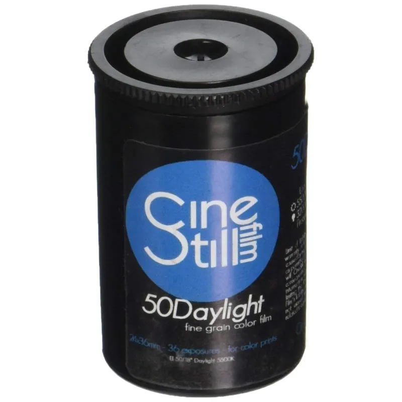 Producing a cinematic image quality for still photographers, the Cinestill 50Daylight Xpro C-41 Color Negative Film is re-formatted movie stock that has been prepared and packaged for use in still cameras. Utilizing a unique "Premoval" stage, the traditional anti-halation rem-jet layer has been removed from this film, enabling its development in C-41 chemistry as well as the motion picture standard ECN-2 process.
