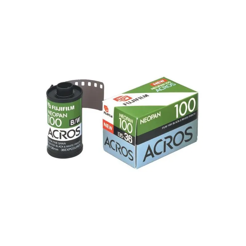 Orthopanchromatic B&W Negative Film ISO 100/21° in Standard Process Super Fine Grain Structure Broad Tonal Range and High Sharpness Neopan 100 Acros from Fujifilm is an orthopanchromatic black and white negative film designed for general use in a wide variety of shooting conditions. It features a medium speed nominal sensitivity of ISO 100/21° when developed in standard black and white chemistry and exhibits a broad tonal range with a super fine grain structure and high sharpness. It also features excellent reciprocity characteristics, making it well-suited for long exposure use. This item is one 36-exposure roll of 35mm film.
