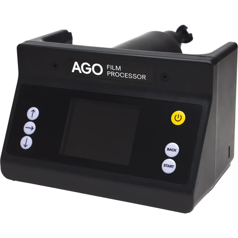 Featuring a clear, intuitive interface, the AGO film processor allows you to choose from pre-programmed development settings or create custom processes. Its built-in Wi-Fi connection enables firmware updates and the addition of new development programs, ensuring your processor remains up-to-date. The device is compact, portable, and rechargeable, providing up to five hours of continuous operation on a single charge.