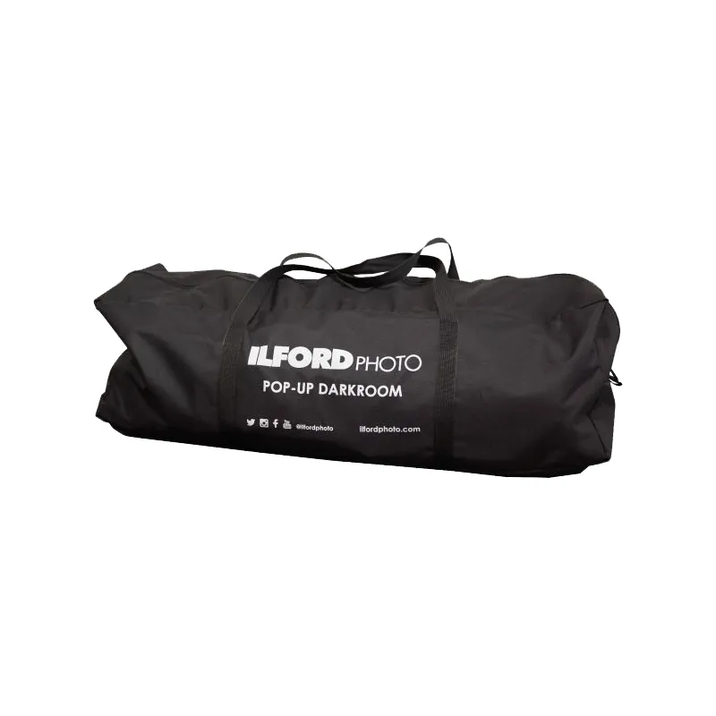 The Pop-Up Darkroom contains a material loop at the top to hang a safelight and can easily be folded down for storage or transportation in the included carry case.