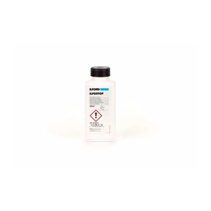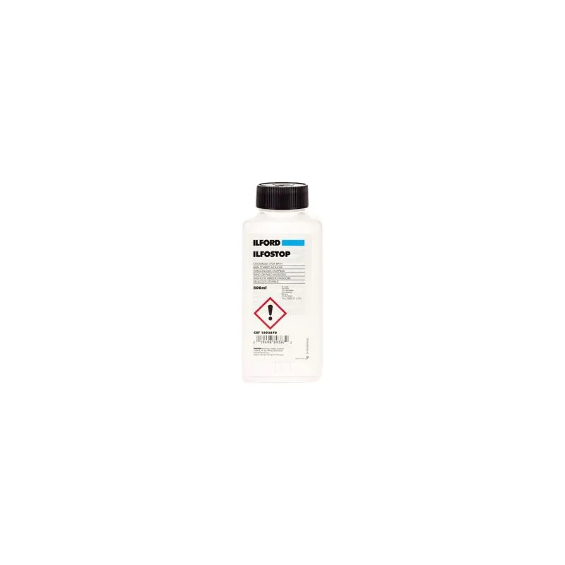 Ilford Ilfostop is a low odor acid stop bath. Normally, when development is completed, films and papers are subjected to a stop bath rinse. This immediately halts the developing process by neutralizing the developer.