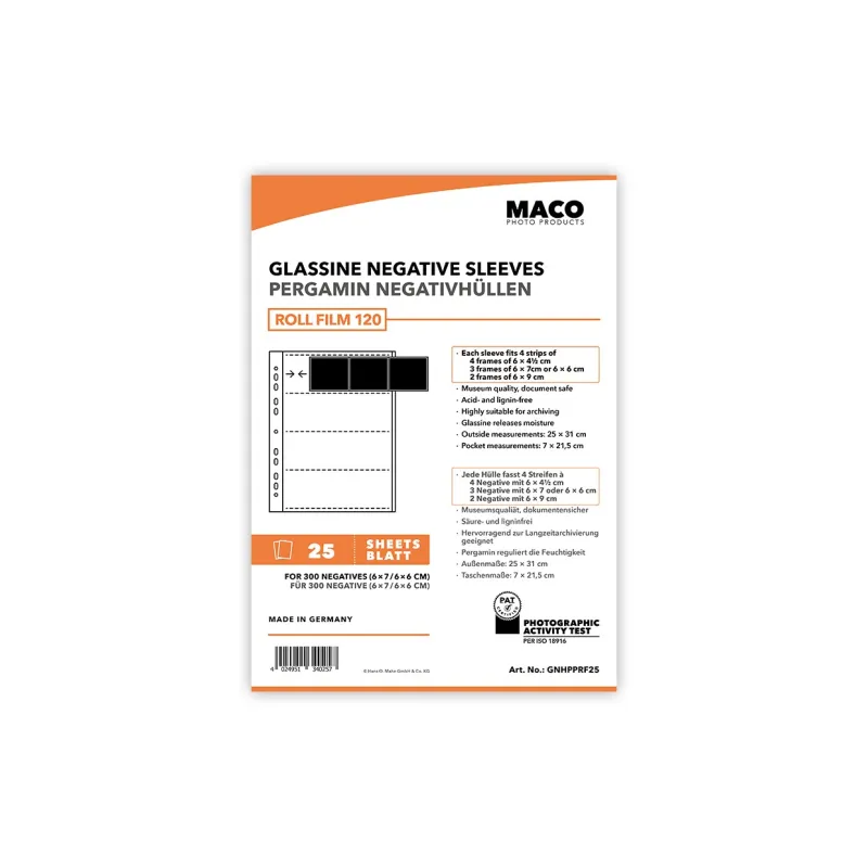 Šios neigtyvų kišenės pagamintos iš smulkiai sumaltos celiuliozės popieriaus, kuris yra daugiausia atsparus riebalams, tačiau turi mažą drėgmės stiprumą. Aukštas skaidrumo lygis pasiekiamas specialiu mechaniniu apdorojimu, vadinamu kalendravimu. MACO glassine kišenės pagamintos iš rūgšties ir lignino neturinčio fotografijos glassine.