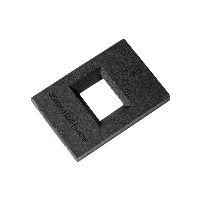 This allows you to see the entire frame with a slight border. VALOI Easy35 holders operate by passing the film through a thin slot that runs through the entire holder and exits on the other side. This way, you can easily push or pull the film through, saving you time and effort compared to traditional shell holders.