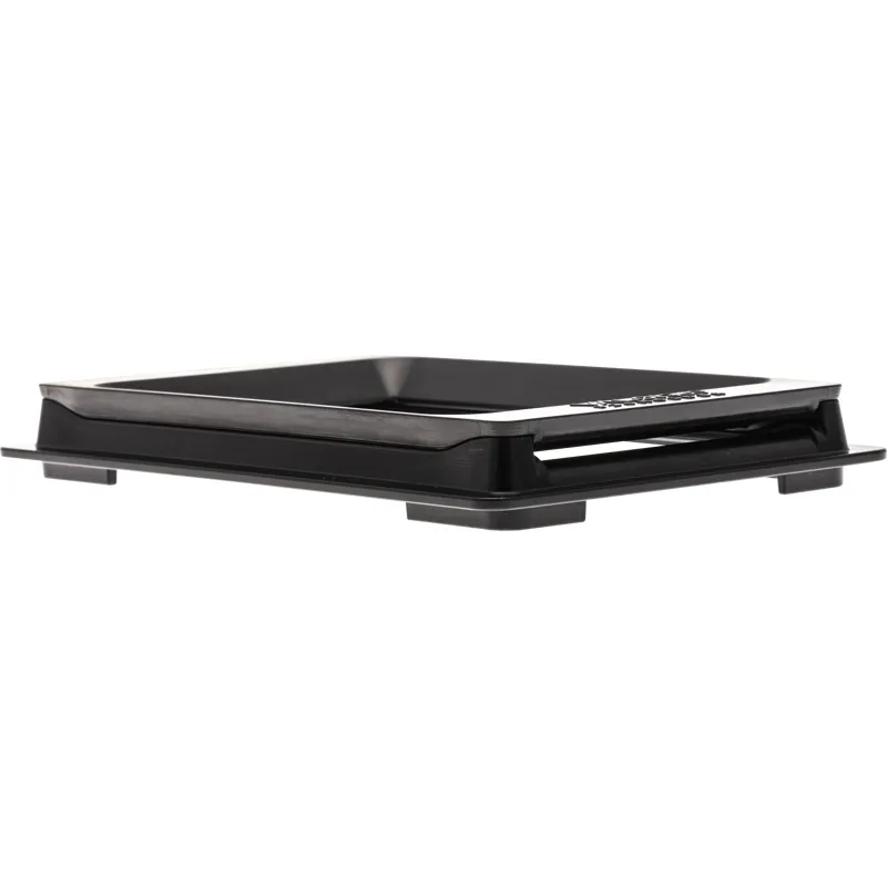 Designed for maximum flatness with a double S-shaped curved rail that mechanically levels the film. It prevents reflections with matte black plastic and strategically placed anti-reflective angles.
