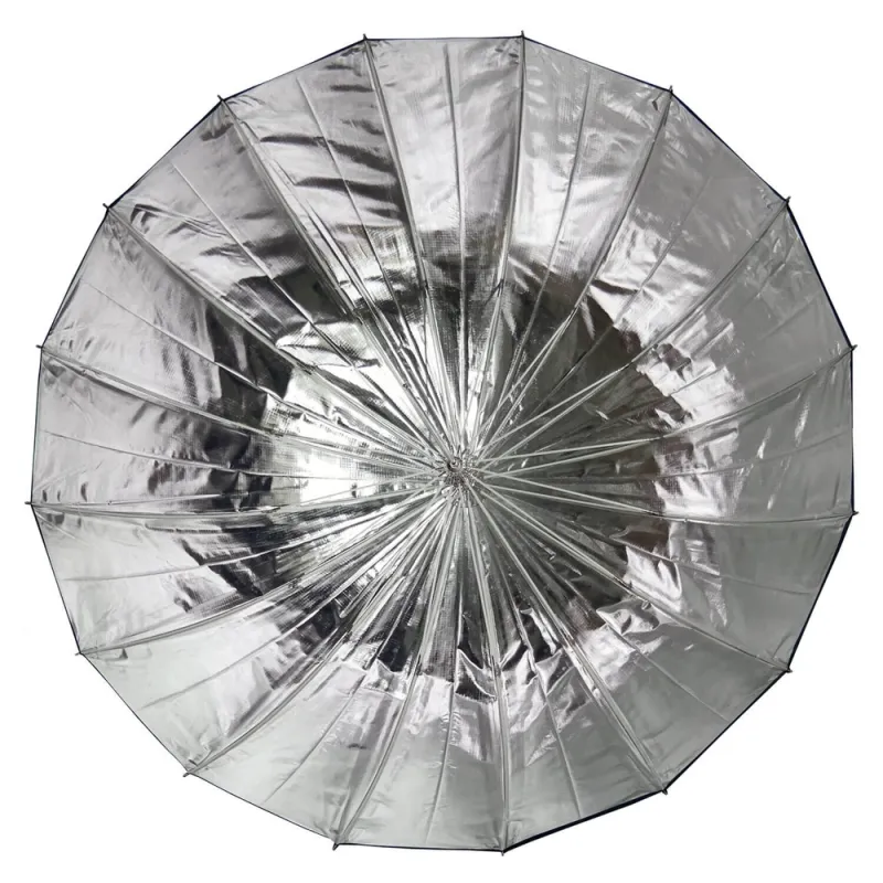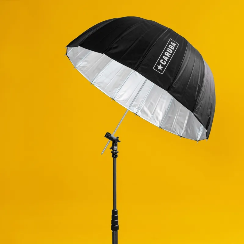 This Caruba Deep Umbrella Silver/Black has a diameter of 85 centimetres, 120 centimetres measured along the top and is suitable for any studio flash kit. The umbrella has a highly reflective silver interior. Ideal for shots with soft shadows and sharp details. The deep shape gives you a more precise control over the light distribution. The 16 fibreglass ribs give the umbrella an even more perfectly rounded shape which helps to spread the light more evenly.