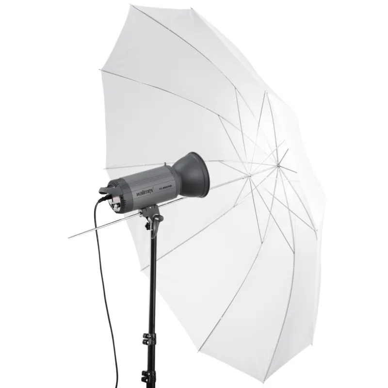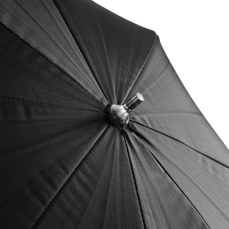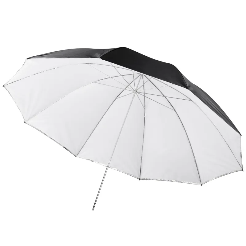 This umbrella by walimex is particularly convenient, as it is reflex umbrella and translucent umbrella at the same time. It consists of two layers, the outer reflex layer, which is coated silver on the inside and black on the outside, and the inner white translucent layer. In order to turn the umbrella from a reflex umbrella into a translucent umbrella, you can simply remove the outer layer.