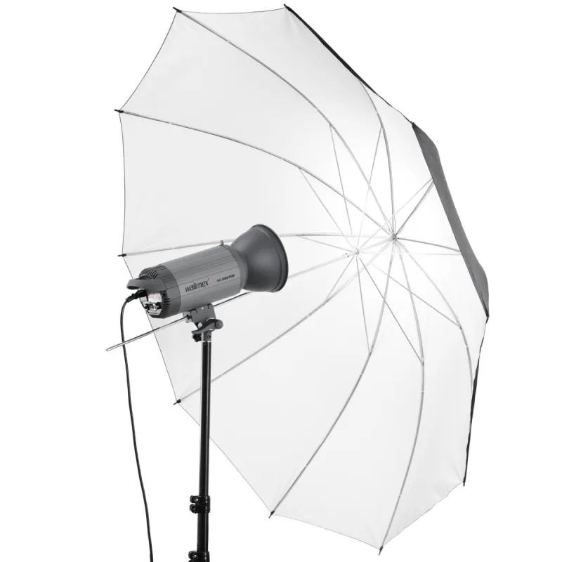 The reflex umbrella, which is coated white on the inside, is very popular especially in portrait photography. Whether wedding photography, children’s portraits, or high key shots, with the reflex umbrella by walimex pro, you are right on track with the reflex umbrella by walimex pro. The very soft and even light characteristic of the umbrella guarantees professional results.