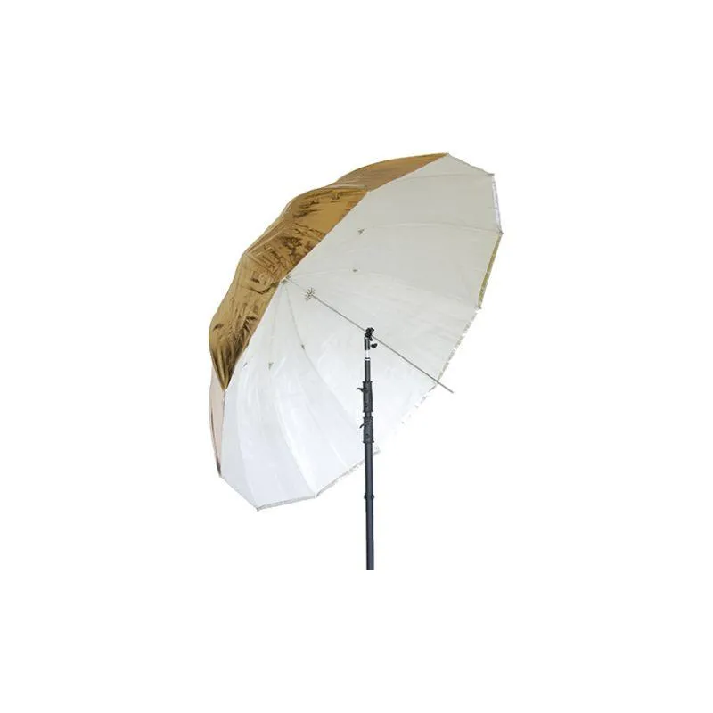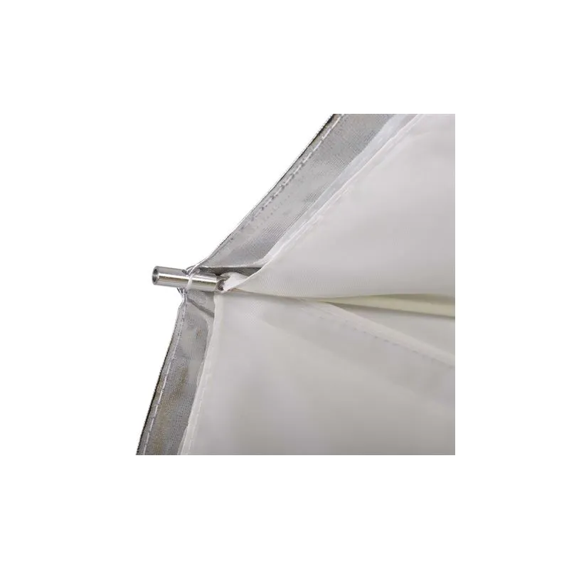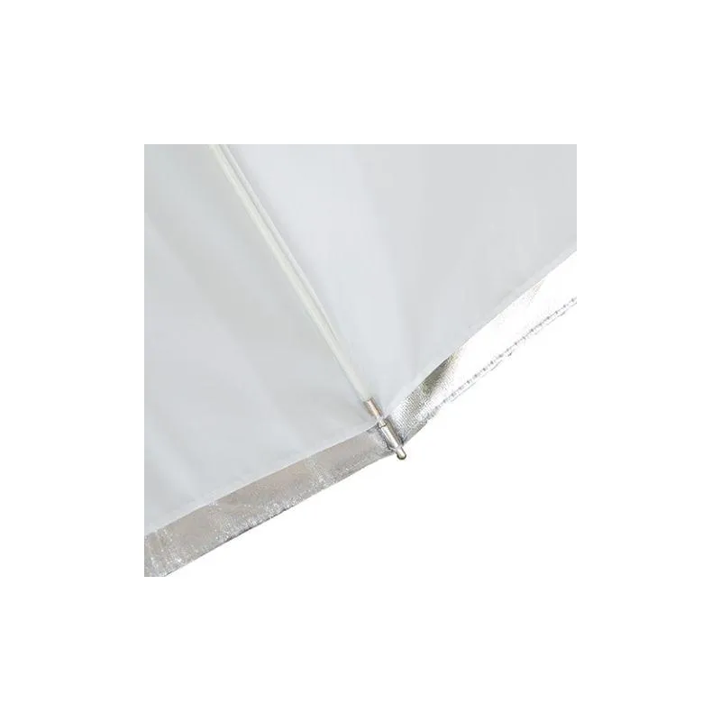 This Falcon Eyes flash umbrella has a transparent, golden and silver cover. By using the different covers, it's possible to use the flash umbrella as a diffuser-umbrella or a reflection-umbrella. When used as a diffuser-umbrella, you can use it to reflect soft light. Besides that it has the possibility to flash through the material to create a softbox effect. When used as a reflection umbrella, it can be used to create an indirect soft lighting effect. An umbrella with a golden coating inside reflects warm light and an umbrella with a silver inside reflects fairly hard light. Due to the large size of the flash umbrella, the light scatters in an ideal way. Because of its size, we recommend to use a stable light stand.