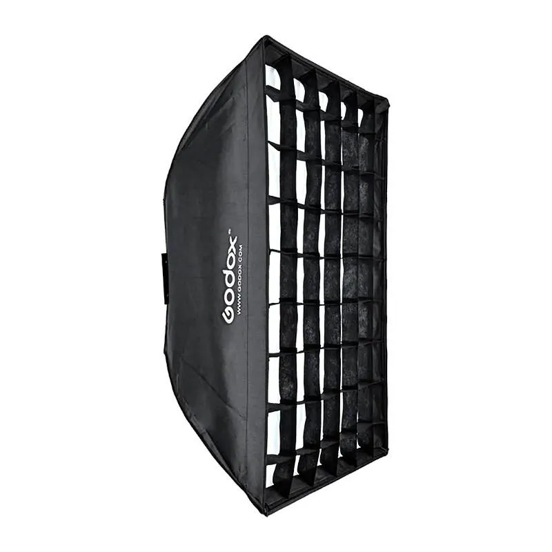 The plating is made of a rip-stop nylon fabric, softboxes are very resistant to mechanical damage, and at the same time very light. The interior is finished with a silver screen that evenly distributes the light on the diffuser. In the front part there is a collar used to mount the honeycomb (included). In the bottom part of the softbox there is a zip closing the hole through which the tripod protruding.