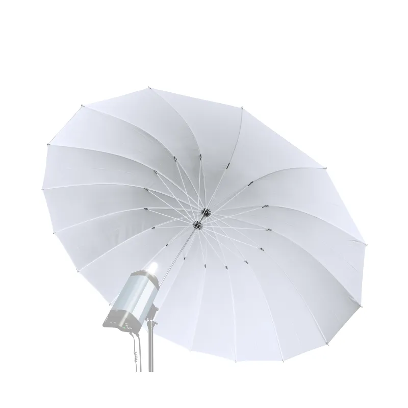 This extra-large umbrella has a white diffuse fabric clothing . Recommended for direct and indirect lighting . With a translucent umbrella of this size, a perefect illumination and light spread can be realized.