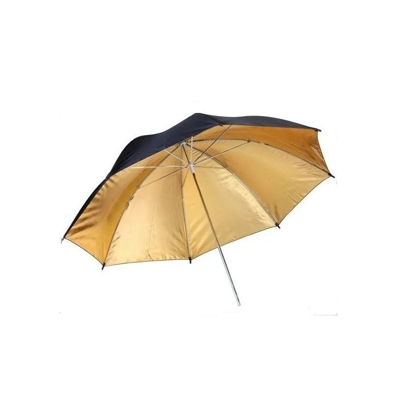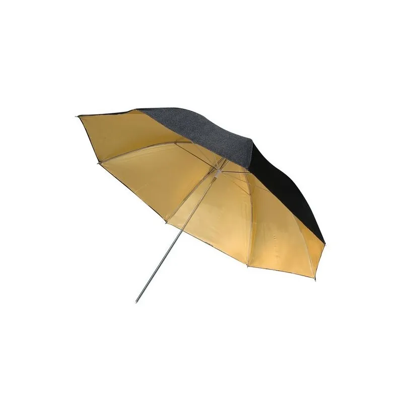 This screen has a gold-colored foil on the inside and a black, non-translucent fabric on the outside. Suitable to achieve a soft effect with indirect lighting. Bresser umbrellas are characterized by their good finish, strong ribs and strong fabrics / foils.