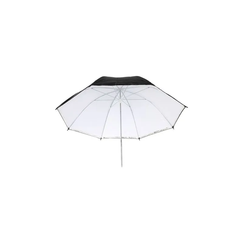 This Linkstar flash umbrella is made of a white, translucent (diffuse) fabric and a black non-translucent cover. With a simple action, it's possible to invert the cover. This way you can switch between a translucent interior or a black interior. A flash white/black flash umbrella provides a high lighting output and can be used to reflect light softly
