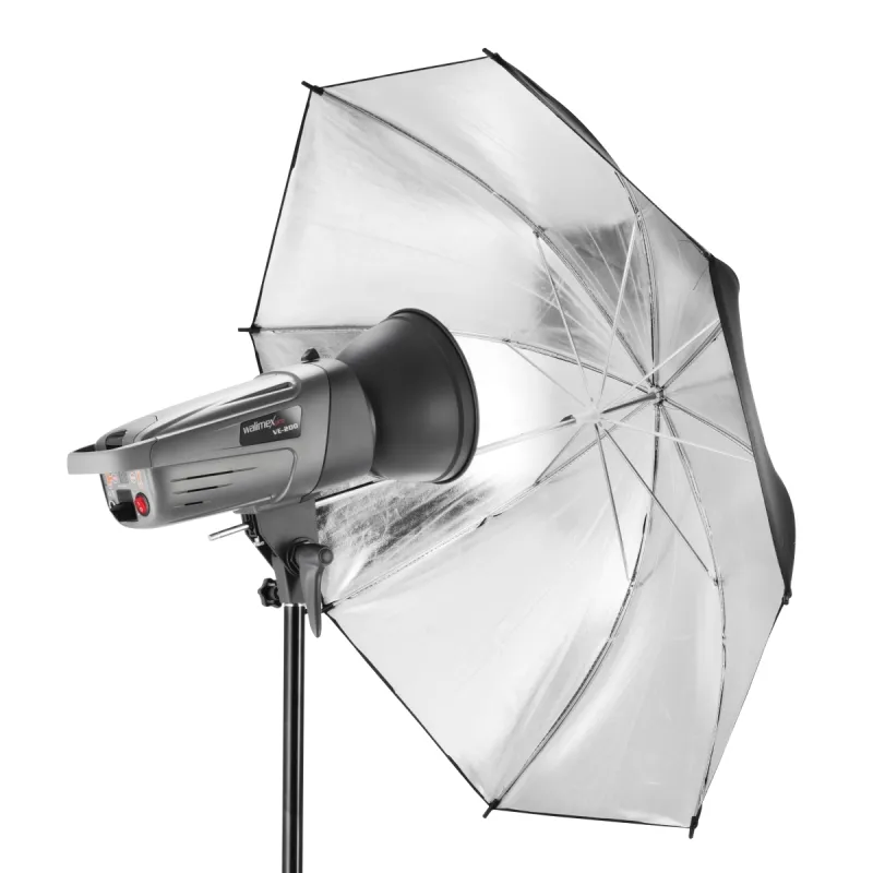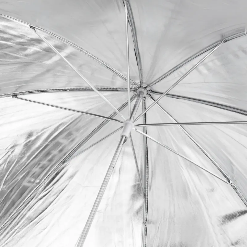 You obtain clear illumination with strong contrasts and brilliant colours with this reflector umbrella, which is silver-coated on the inside. It is particularly suitable for product photography or to accentuate moods in portrait photography. The flexible alternatives for use and storage make it an ideal companion on location . The translucent light umbrella is simply attached to the umbrella bracket of your studio flashgun.