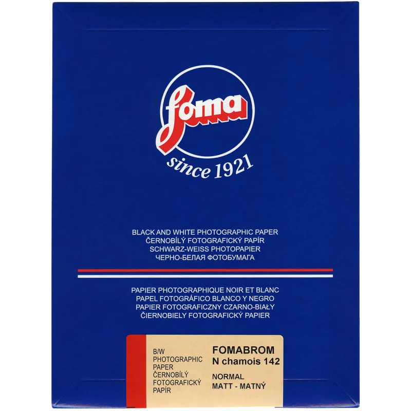 Fomabrom N chamois is a black and white photographic paper produced on a baryta paper base in a retro tone. The chlorobromide silver emulsion gives the resulting silver image a neutral to slightly warm tone. The paper enables reproduction of a very rich halftone scale and is characterized by a saturated black rendering. It has a medium level of optical sensitivity, which is suitable for the application of enlargement and contact copying methods.