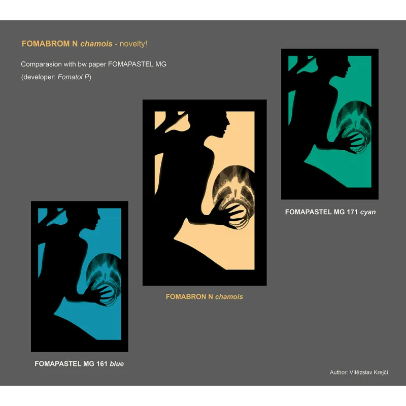 Fomabrom N chamois is a black and white photographic paper produced on a baryta paper base in a retro tone. The chlorobromide silver emulsion gives the resulting silver image a neutral to slightly warm tone. The paper enables reproduction of a very rich halftone scale and is characterized by a saturated black rendering. It has a medium level of optical sensitivity, which is suitable for the application of enlargement and contact copying methods.
