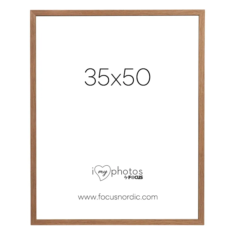 Oak colored frame with a classic style. The frame has a thin profile. The frame comes with real glass that highlights the best in your photos. Frame profile is 22mm deep and 13,5mm wide. The picture size of the frame is 35x50cm.