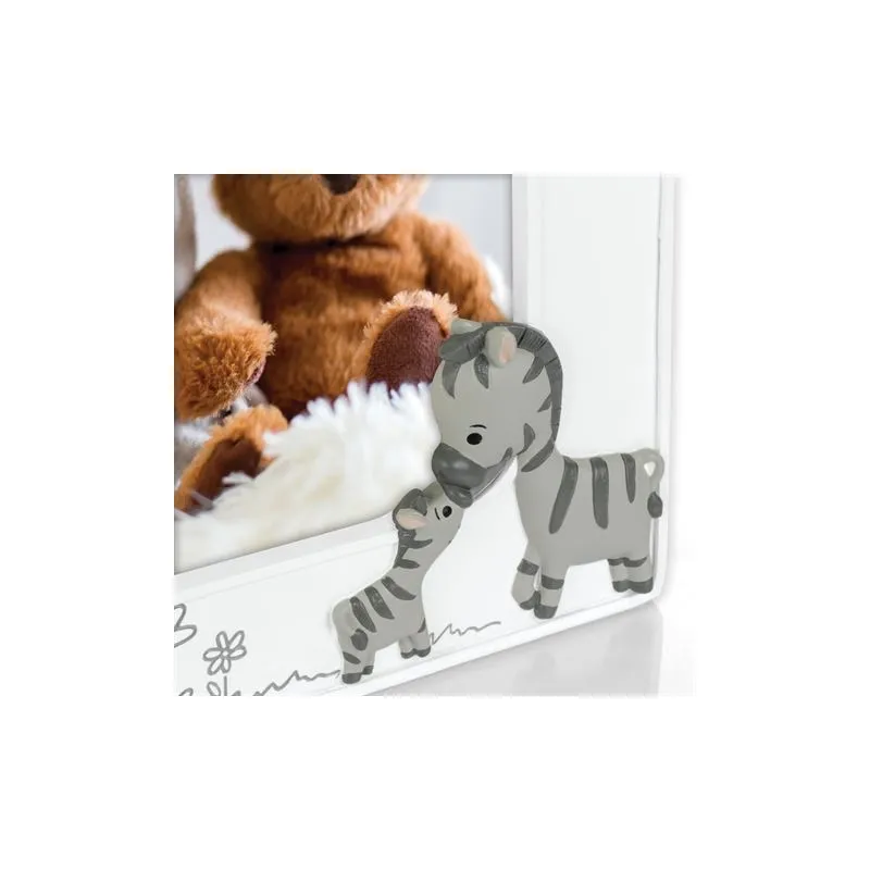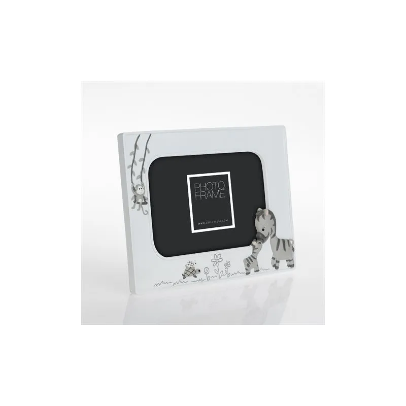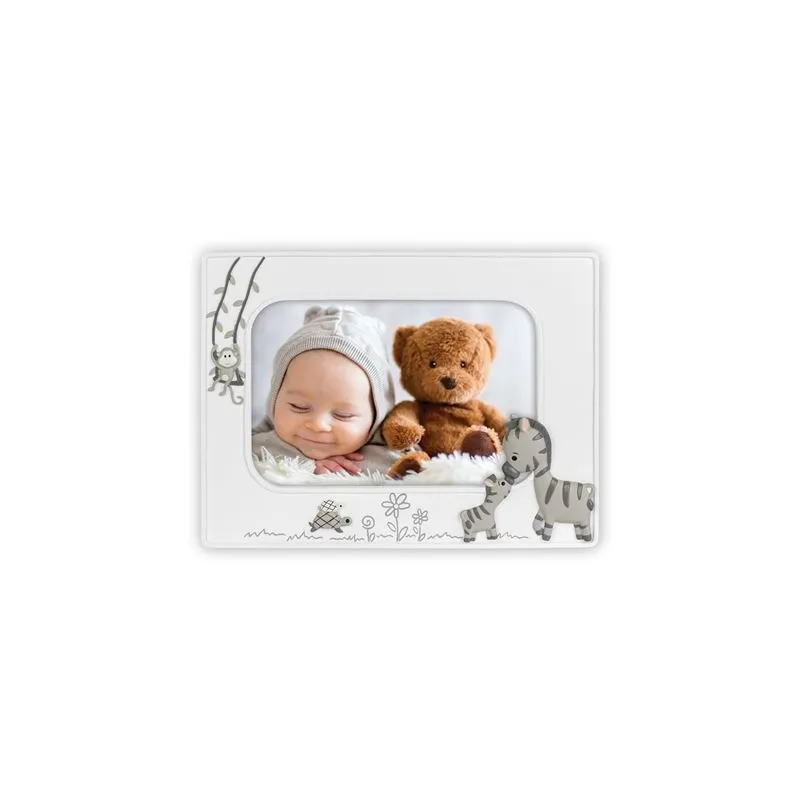 The Zep Photo Frame EE324H Gabriele Horizontal 10x15 cm is a baby photo frame which is suitable for 1 photo. You can place 1 photo of 10x15 cm in this frame. The photo frame is characterized by its fanciful look and decorated with zebras, a monkey and turtles. Ideal for celebrating a birth. It is appropriate for boys and girls. The overall dimensions, including the frame, are 19.5 x 15 cm (lxw).