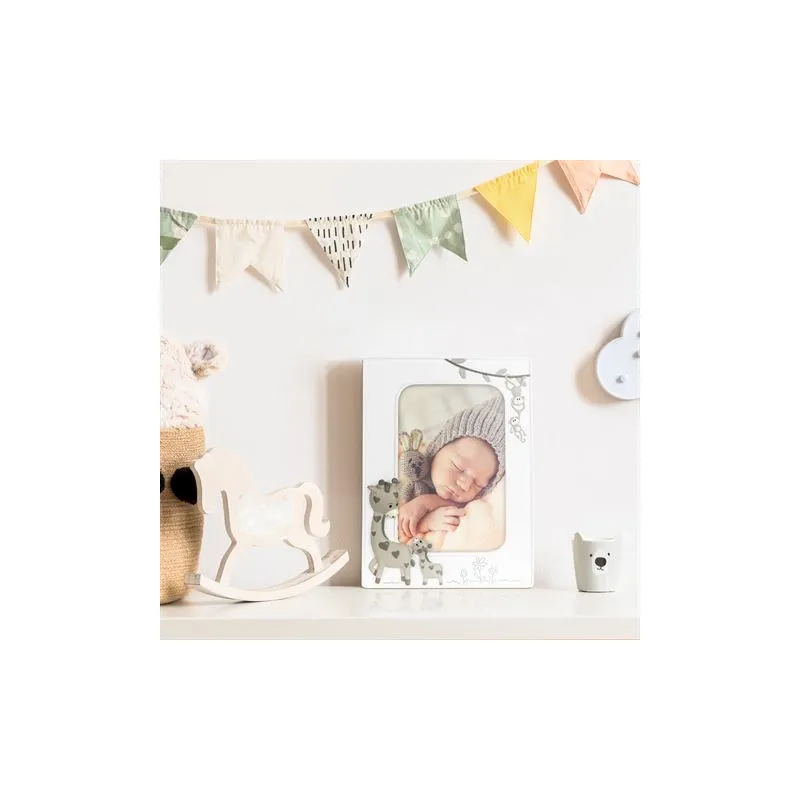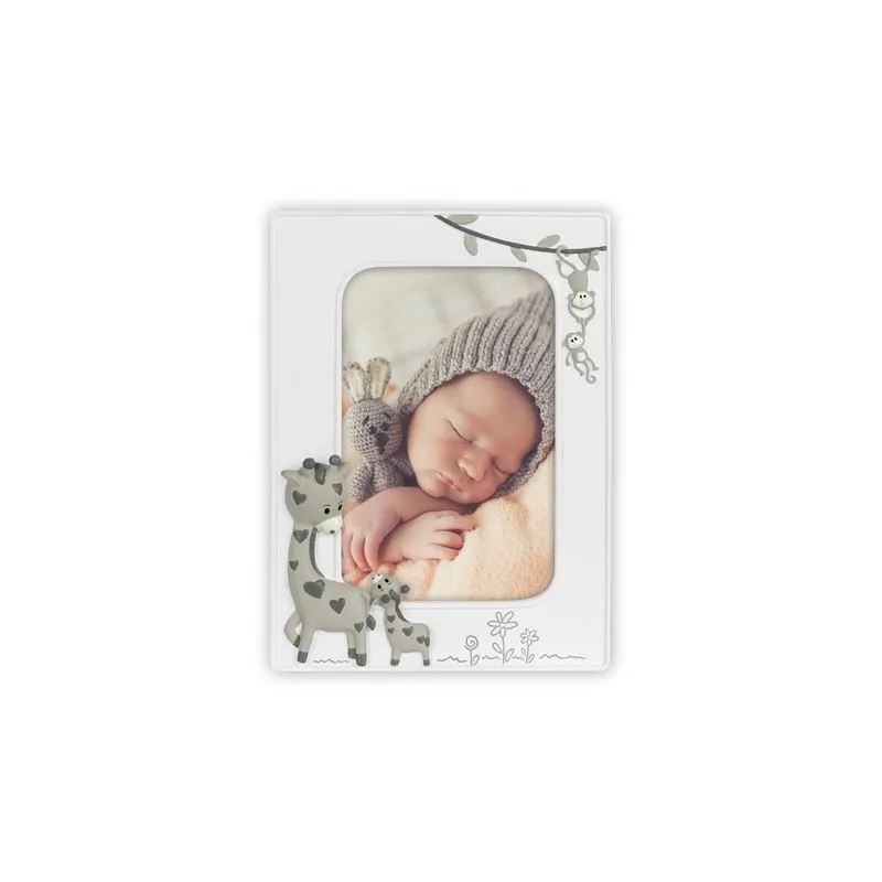 The Zep Photo Frame EE325V Gabriele Vertical 10x15 cm is a baby photo frame which is suitable for 1 photo. You can place 1 photo of 10x15 cm in this frame. The photo frame is characterized by its fantasy look and decorated with zebras and a baby monkey in 3D. Ideal for celebrating a birth. It is suitable for boys and girls. The overall dimensions, including the frame, are 19.5 x 15 cm (lxw).