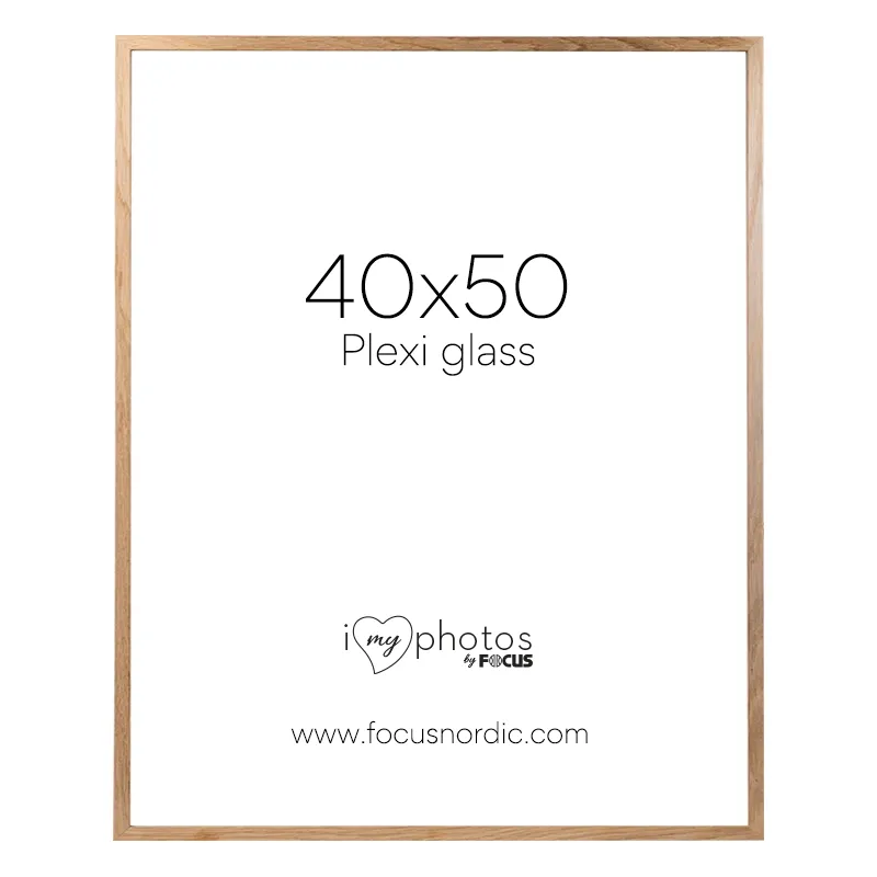 Oak colored frame with a classic style. The frame has a thin profile. The frame comes with plexiglass, perfect for children's rooms or environments where you want a shock resistant glass. Frame profile is 22mm deep and 13,5mm wide. The picture size of the frame is 40x50cm.