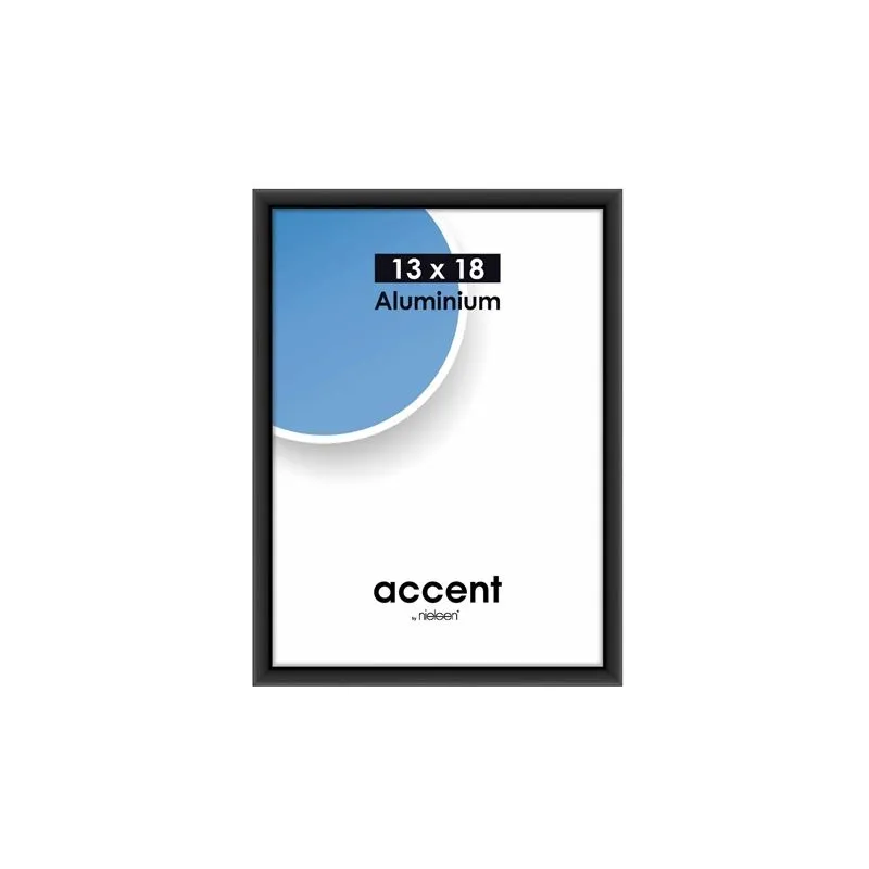 The Nielsen Photo Frame 53226 Accent Frosted Black 13x18 cm is a black picture frame suitable for 1 picture. You can insert a picture of 13x18 cm in this frame. The picture frame is characterized by its aluminium look. The total dimensions, including the frame, are 15x20 cm.