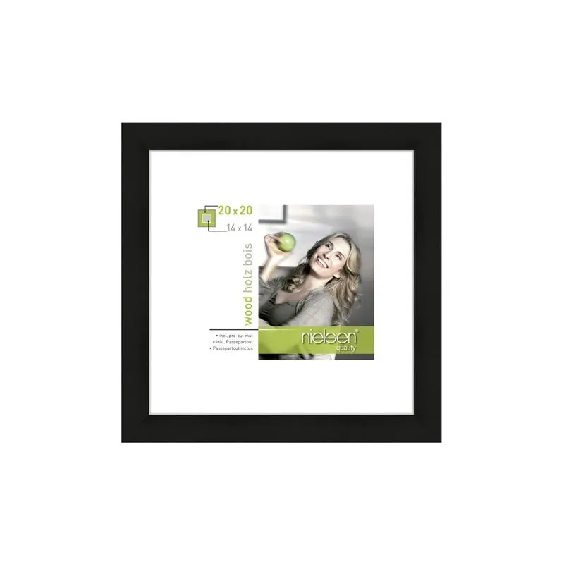The 8988051 Apollon from Nielsen is a black picture frame suitable for one picture. You can insert a picture of 20x20 cm in this frame. A passe-partout is also supplied for 14x14 cm pictures. The picture frame is characterized by its wooden look. The total dimensions, including the frame, are 24x24 cm.