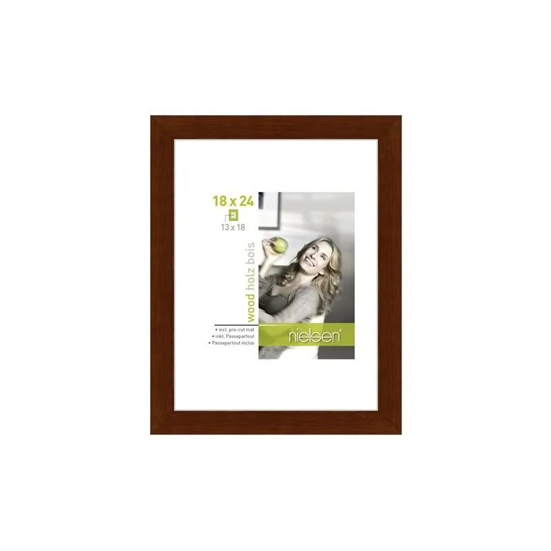 The 8988044 Apollon from Nielsen is a brown (Wenge) picture frame suitable for one picture. You can insert a picture of 18x24 cm in this frame. A passe-partout is also supplied for 13x18 cm pictures. The picture frame is characterized by its wooden look. The total dimensions, including the frame, are 22x28 cm.