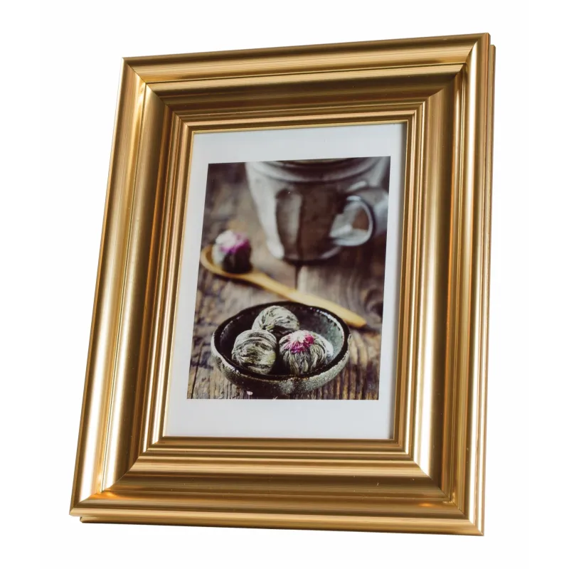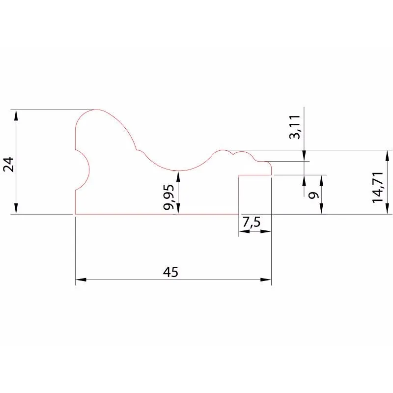 Elegant profile on this composite frame. Wide profile in gold colour, 45x21mm.