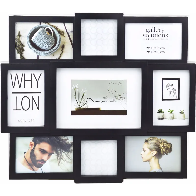 Collage frame for 9 photos. The frame is made of plastic and real glass.