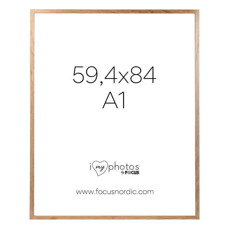 Oak colored frame with a classic style. The frame has a thin profile. The frame comes with real glass that highlights the best in your photos. Frame profile is 22mm deep and 13,5mm wide. The picture size of the frame is 59,4X84 (A1) cm.