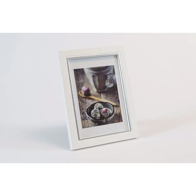 20mm wide wooden frame with a inner edge of brushed silvercolour.