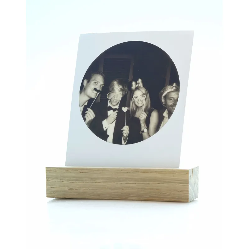 A wooden block made for a photo or anything else you like to have easily visible and changeable. As for example it is also perfect for a dinner menu, placement card or similar.