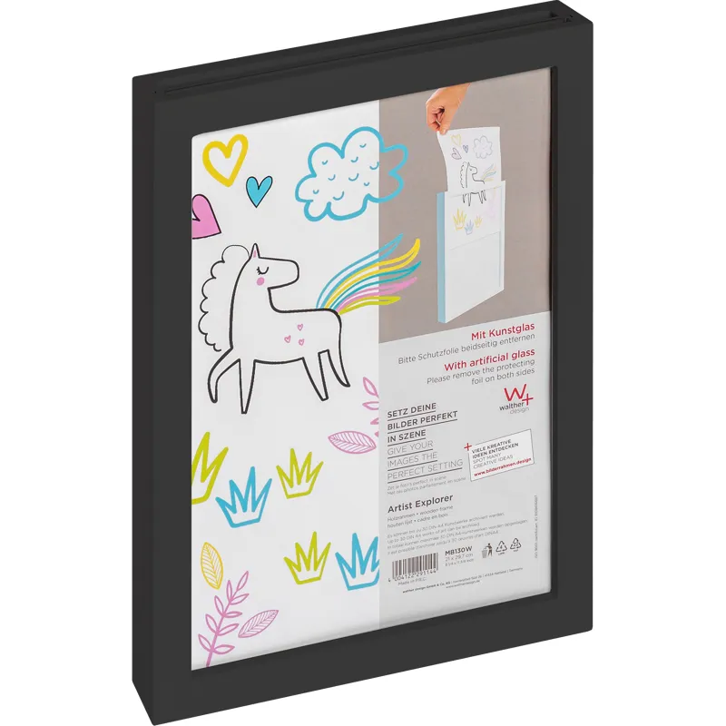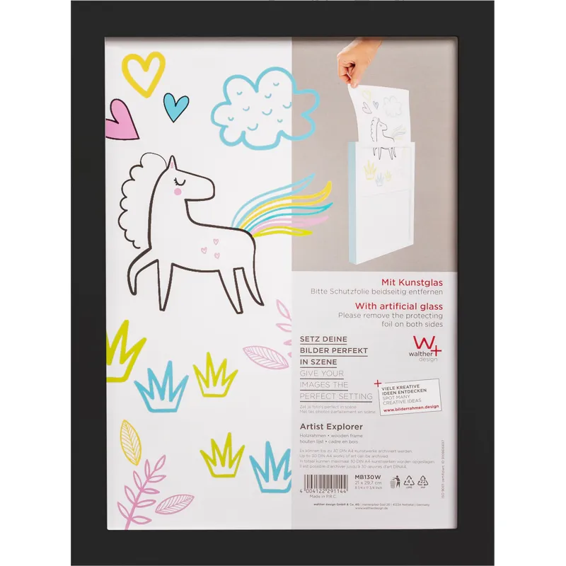 This frame is designed for images in A4 size (21x29.7 cm). It is perfect for childrens drawings.