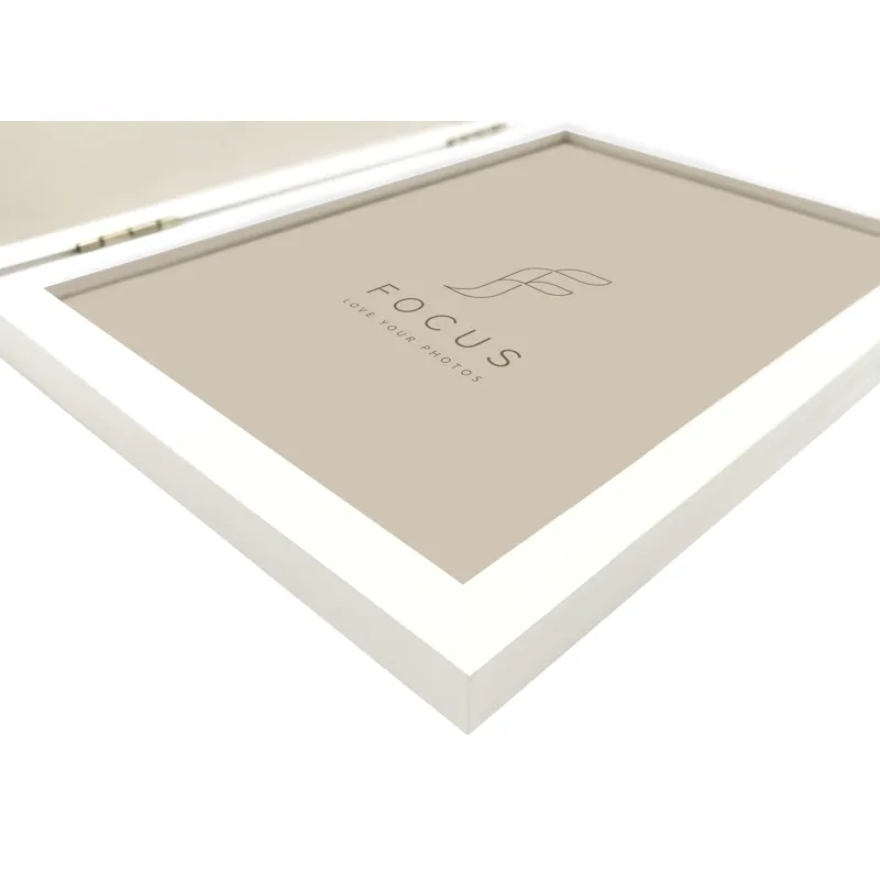Real glass front enhances image clarity and protects them over time, ensuring each photo is beautifully preserved and presented. Suitable for both wall mounting and display on a shelf, with sizes up to 24 x 30 cm featuring a built-in back support.
