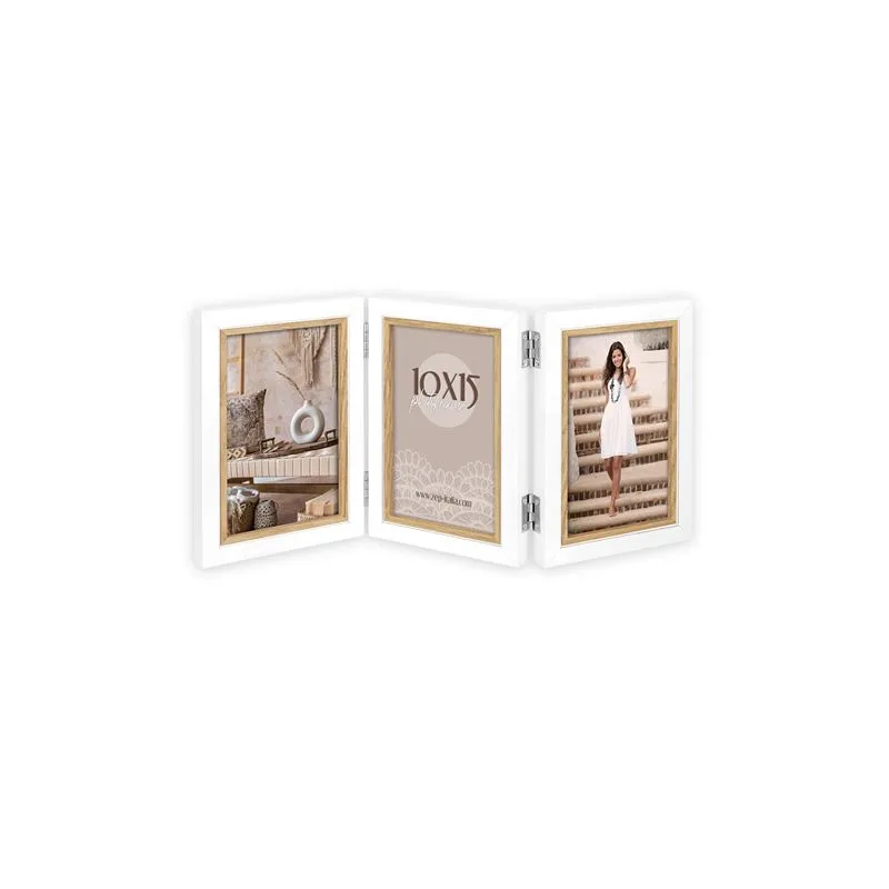 The CV392 from Zep Italia is a white photo frame which is suitable for 3 photo's of 10x15 cm. The photo frame features a wooden look. The total dimensions, including the frame, are 38x17,5 cm.