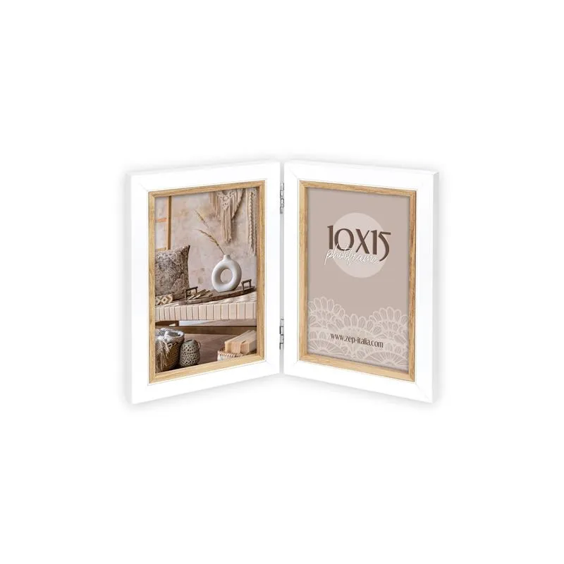 The CV263 from Zep Italia is a white photo frame which is suitable for 2 photo's of 10x15 cm. The photo frame features a wooden look. The total dimensions, including the frame, are 25x17,5 cm.